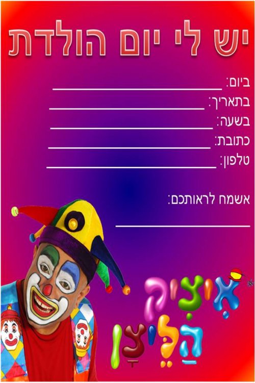 זה הזמן להתקשר ולהזמין את איציק הליצן גם אליכם - 0522542940