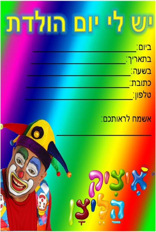 שיהיה המון מזל טוב ויום הולדת שמח מאיציק הליצן |